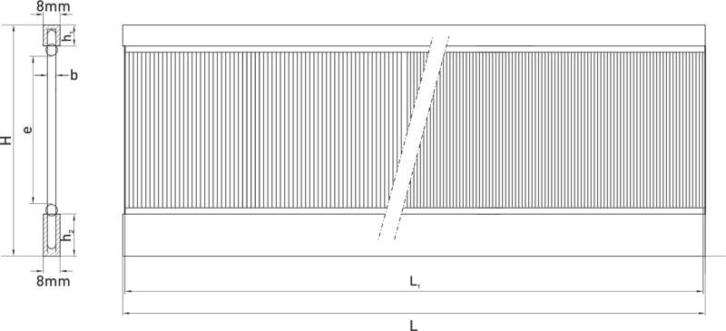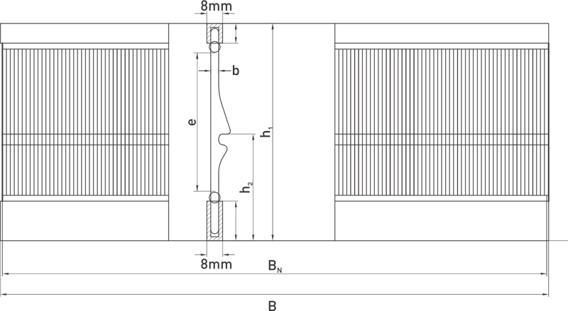 | Inner height of reed | e | 60 - 80 mm |